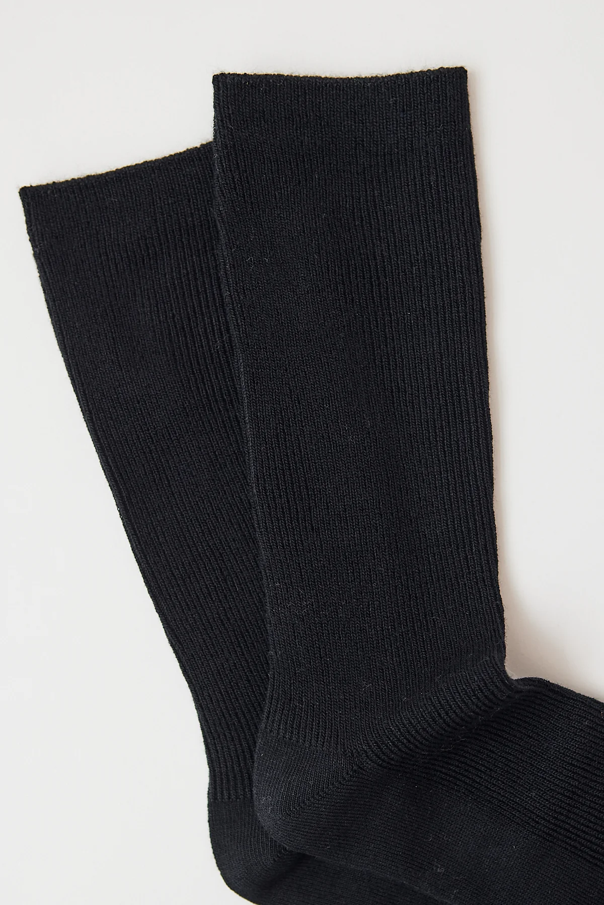 Le Bon Shoppe Trouser Socks in black. Long, soft, luxurious leg warmer socks, scrunch down or pull up. Model is pictured wearing the eggnog colorway.